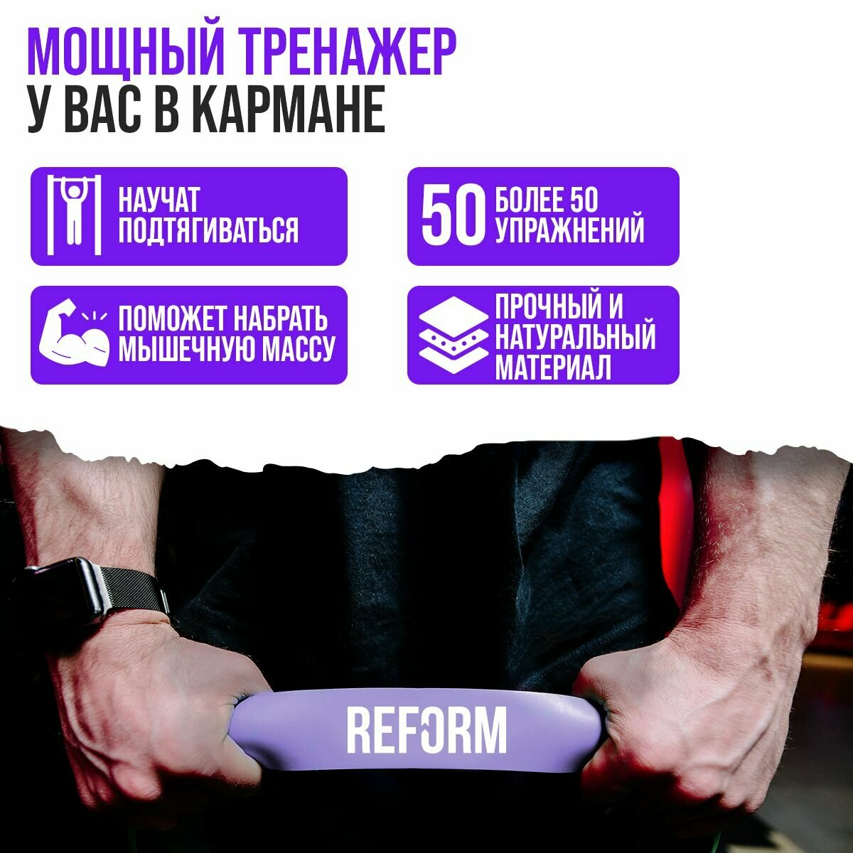 Отзывы на Ленточный эспандер / резинка для подтягиваний на турнике ( 30-38 кг ), фиолетовый