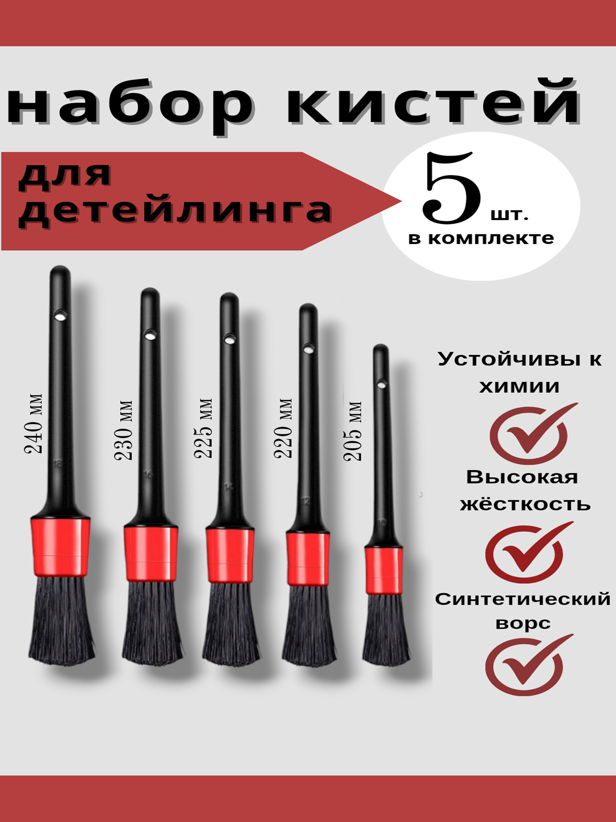 10 цен на Кисточки для детейлинга авто, набор 5шт. Средне-высокая жесткость