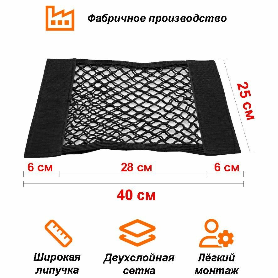 Сетка на липучке 25х40 см в багажник автомобиля информация: