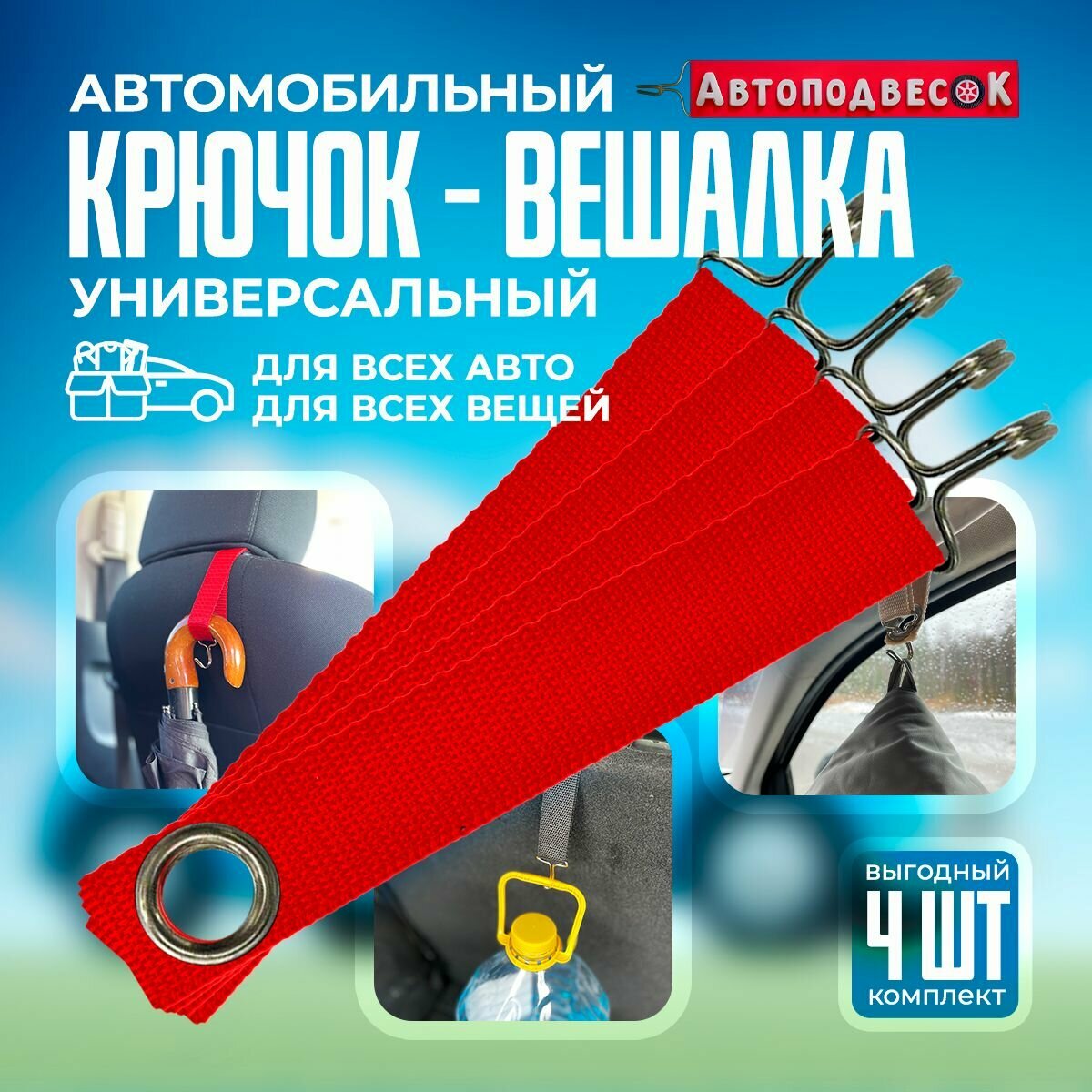 Отзывы на Универсальный мягкий крючок вешалка в авто на подголовник красный 4 шт