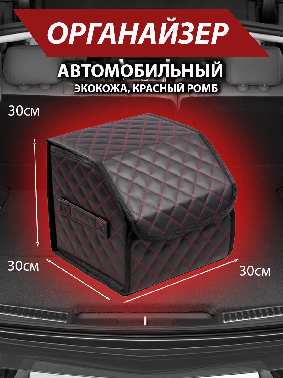 Сумка-органайзер в багажник Хонда хр-в (1998 - 2001) внедорожник 3 двери / Honda HR-V, экокожа , Черный с красной строчкой, Размер М:30x30x55см