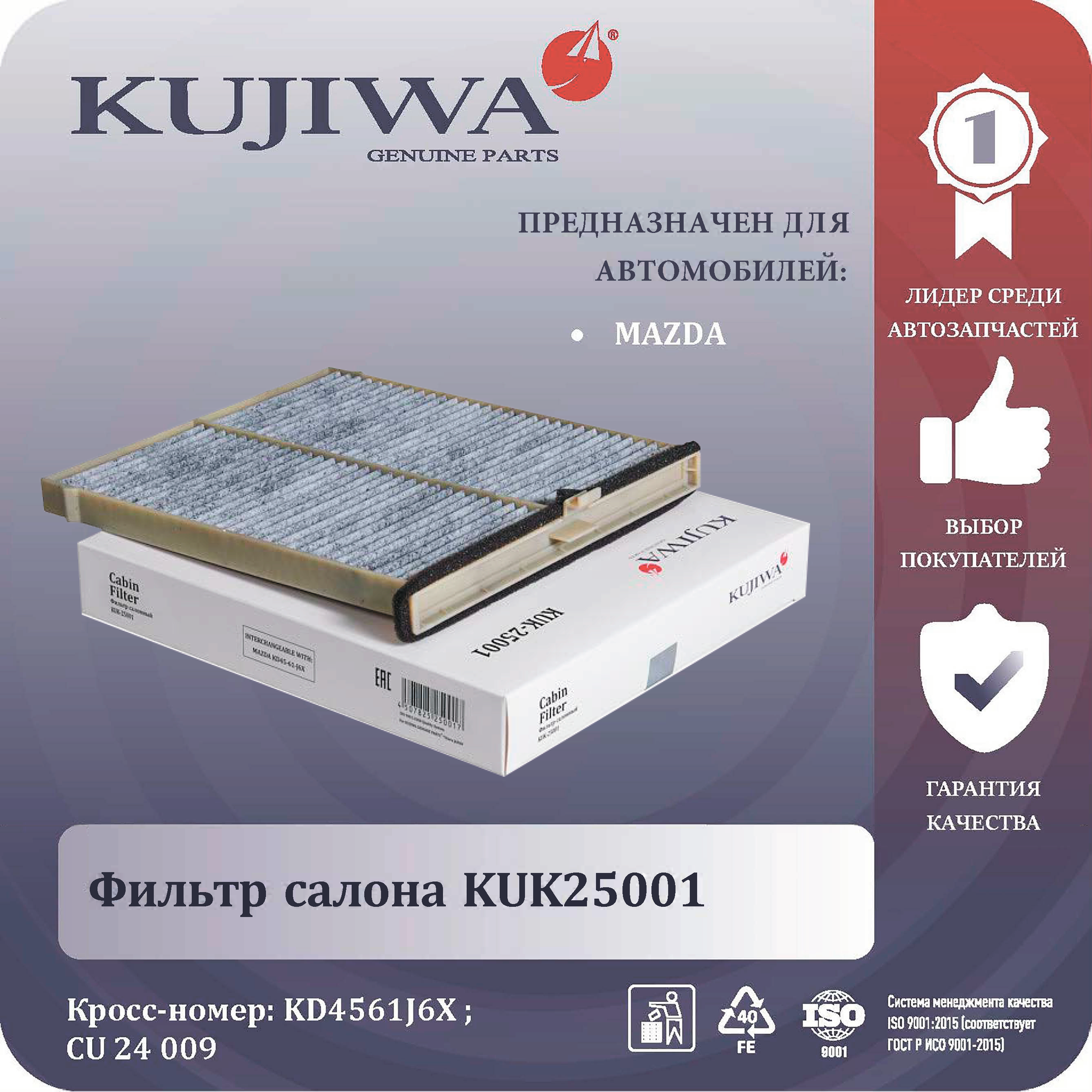 Фильтр салона угольный для MAZDA Mazda 3 / Mazda 6 /Mazda CX-5 KUK25001 KUJIWA KD4561J6X информация: