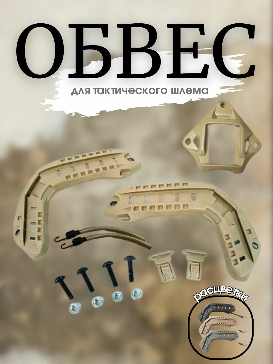 Отзывы на Обвес на военный шлем без ушей MICH. Комплект: боковые рейки и шрауд NVG платформа, цвет песок
