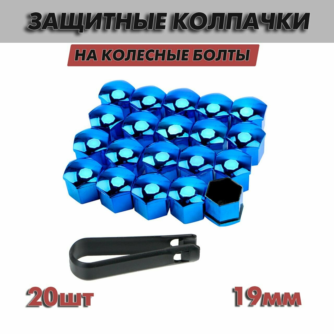 10 цен на Защитные колпачки на колесные болты и гайки синие, 19мм, 20шт, съемник в комплекте