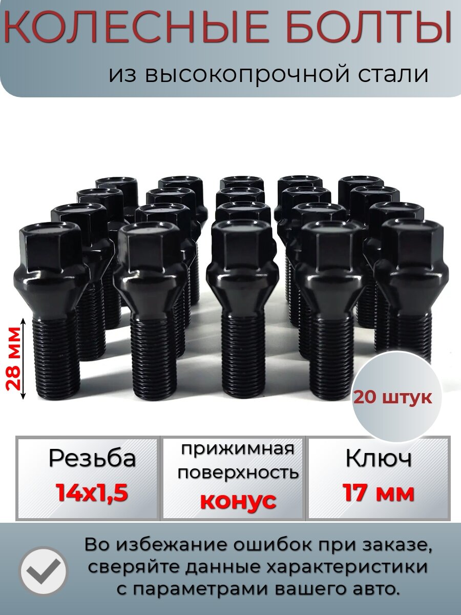 Черные болты колесные резьба М14х1.5 длина резьбы 28 мм информация: