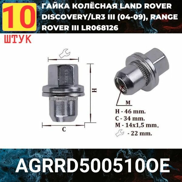 Гайка колёсная LAND ROVER Discovery/ LR3 III (04-09), Range Rover III LR068126 (набор- 10 шт). AGRR500510 информация: