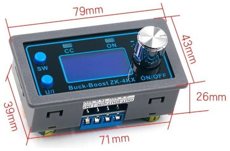 Регулируемый преобразователь напряжения buck boost (повышение понижение) DC-DC GSMIN LLC01 35Вт, 0.5В - 30В, 0 - 4А импульсный (Синий) информация: