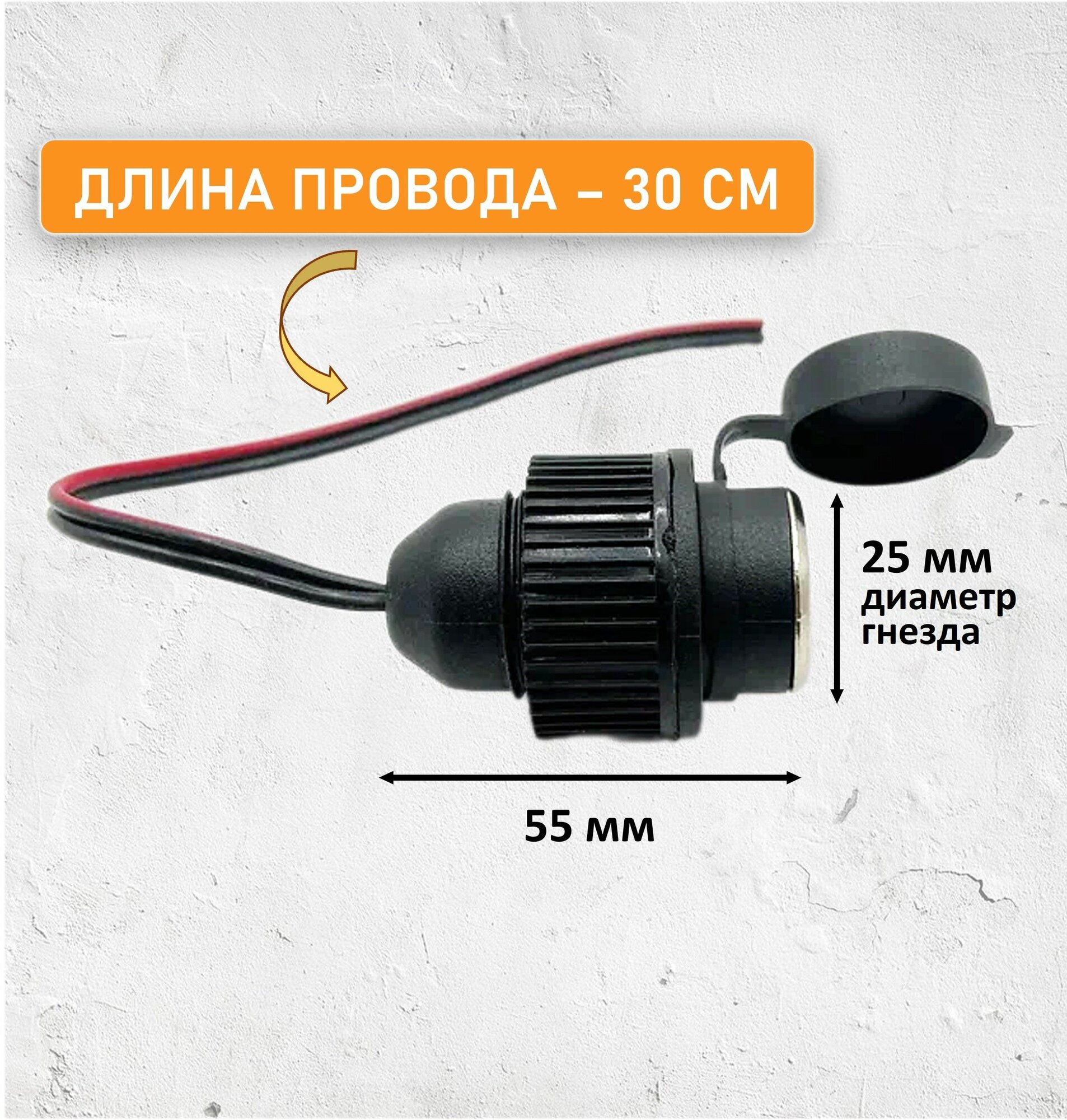 Гнездо прикуривателя с проводом 30 см влагозащищенный 12/24В с защитной крышкой , провод 1,5 мм2 информация: