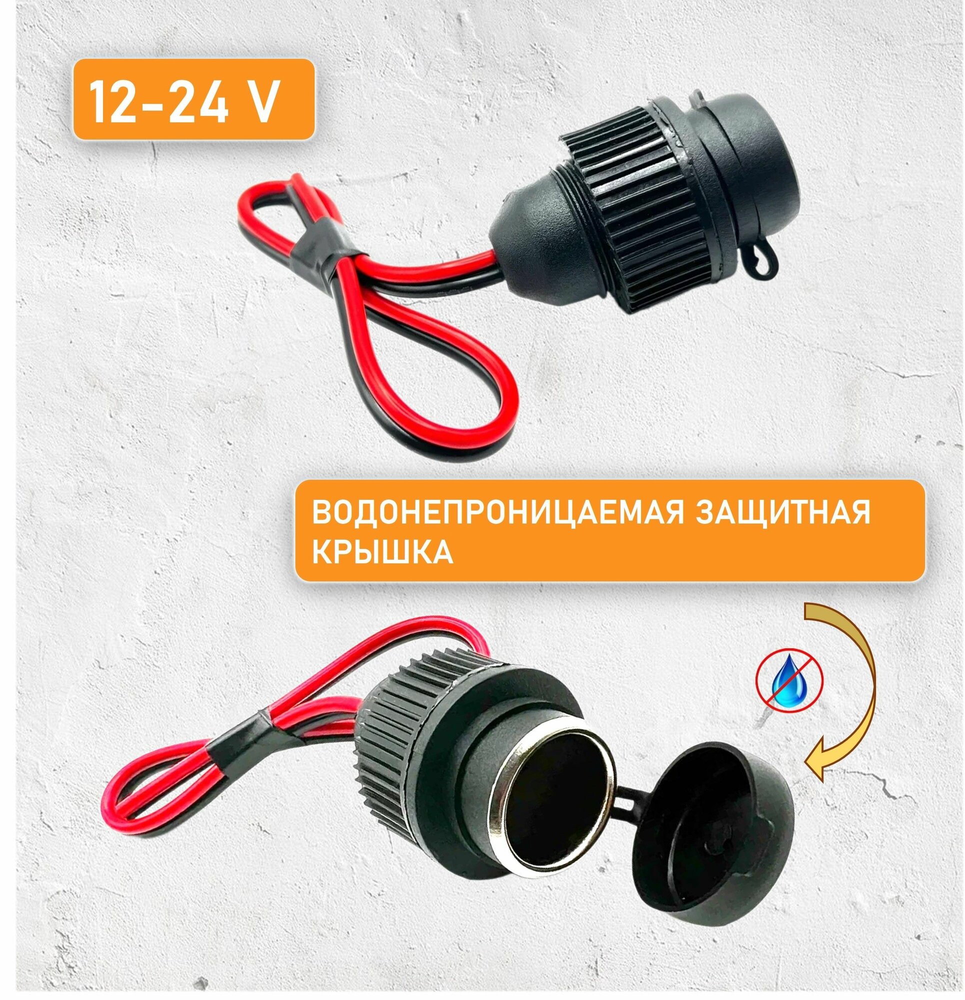 10 цен на Гнездо прикуривателя с проводом 30 см влагозащищенный 12/24В с защитной крышкой , провод 1,5 мм2