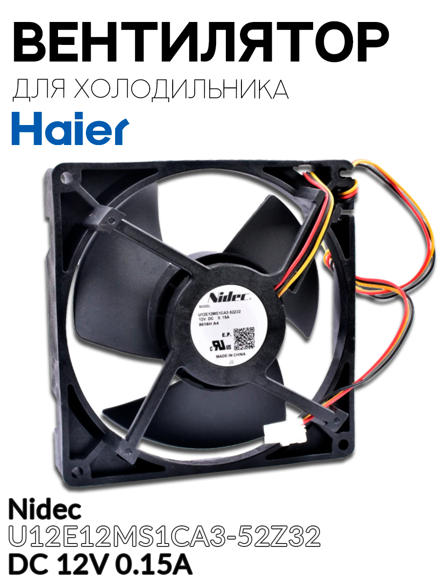 | Дополнительная информация | Вентилятор обдува ф.Nidec model U12E12MS1CA3-52Z32 DC12V, 0.15A 0804H P4 (3 провода с фишкой) для холодильников HAIER (ХАЕР) |