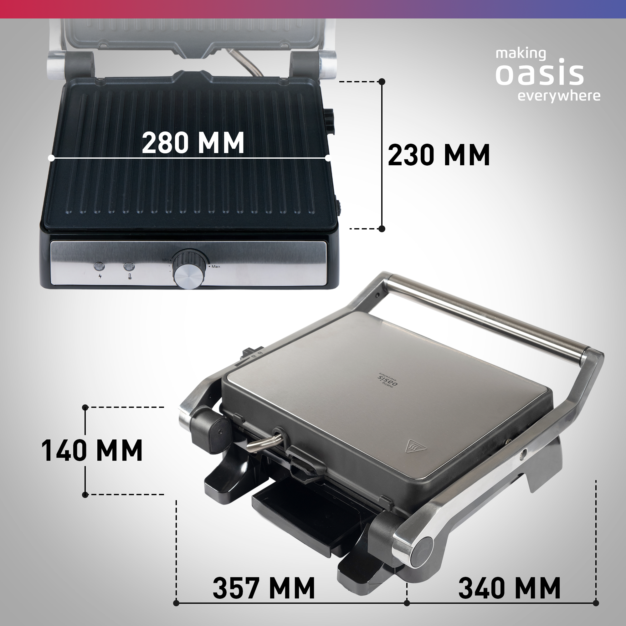 10 цен на Гриль электрический со съемными панелями making Oasis everywhere GR-1S, 2000 Вт