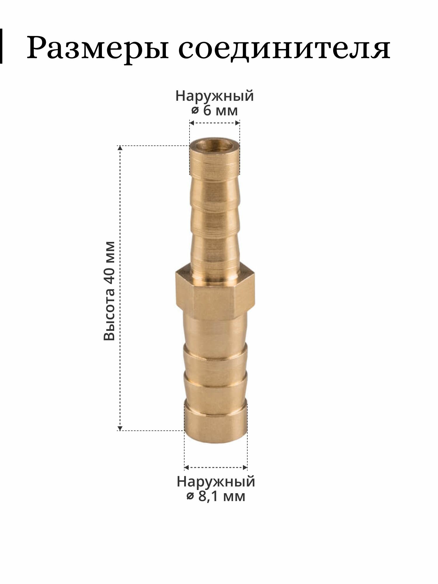| Подробная комплектация | Латунный соединитель «ёлочка» для шлангов прямой, 6-8 мм (10 шт.) |