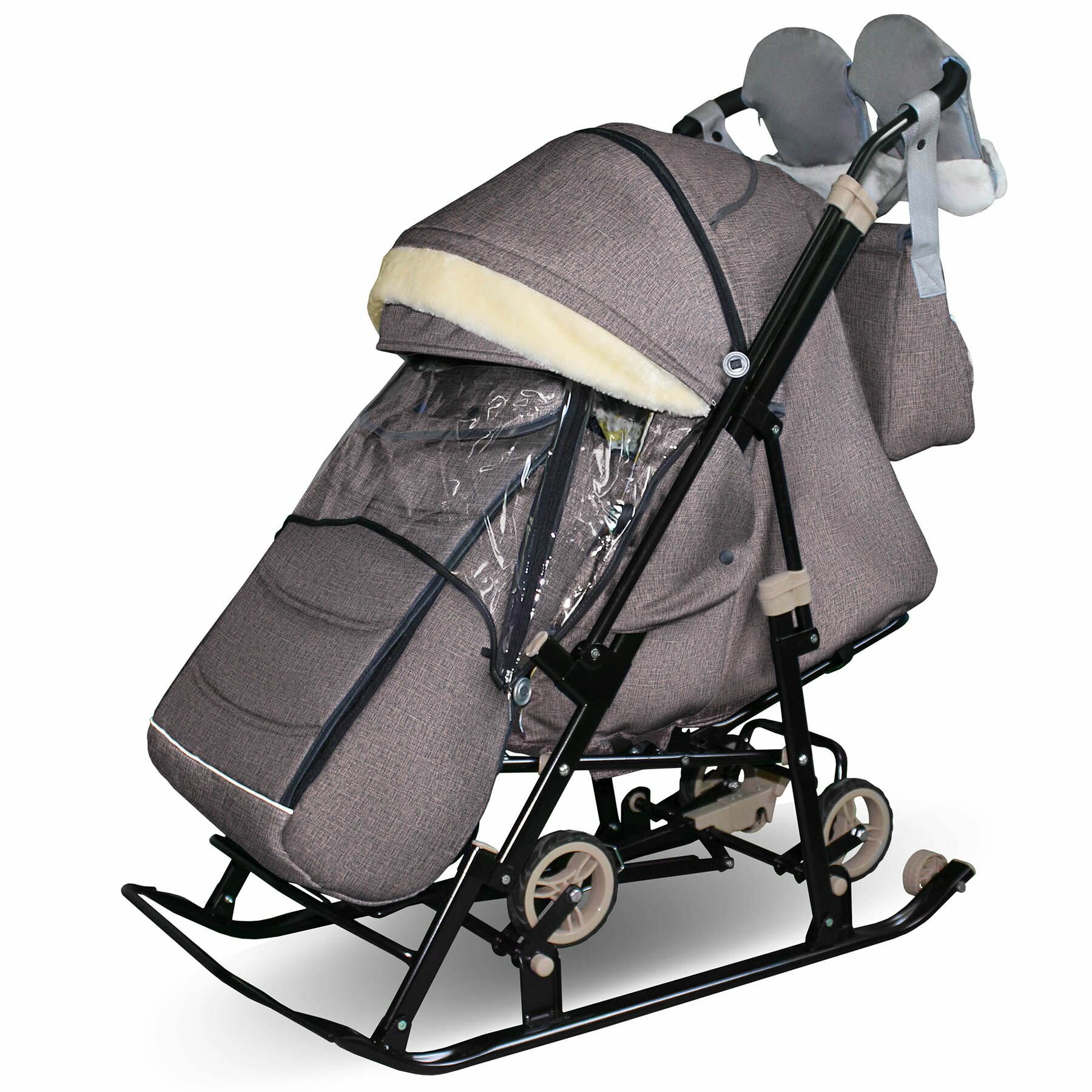 Санки коляска детские зимние Galaxy Glory с колесами и перекидной ручкой, серо-коричневый лен 20 099 ₽