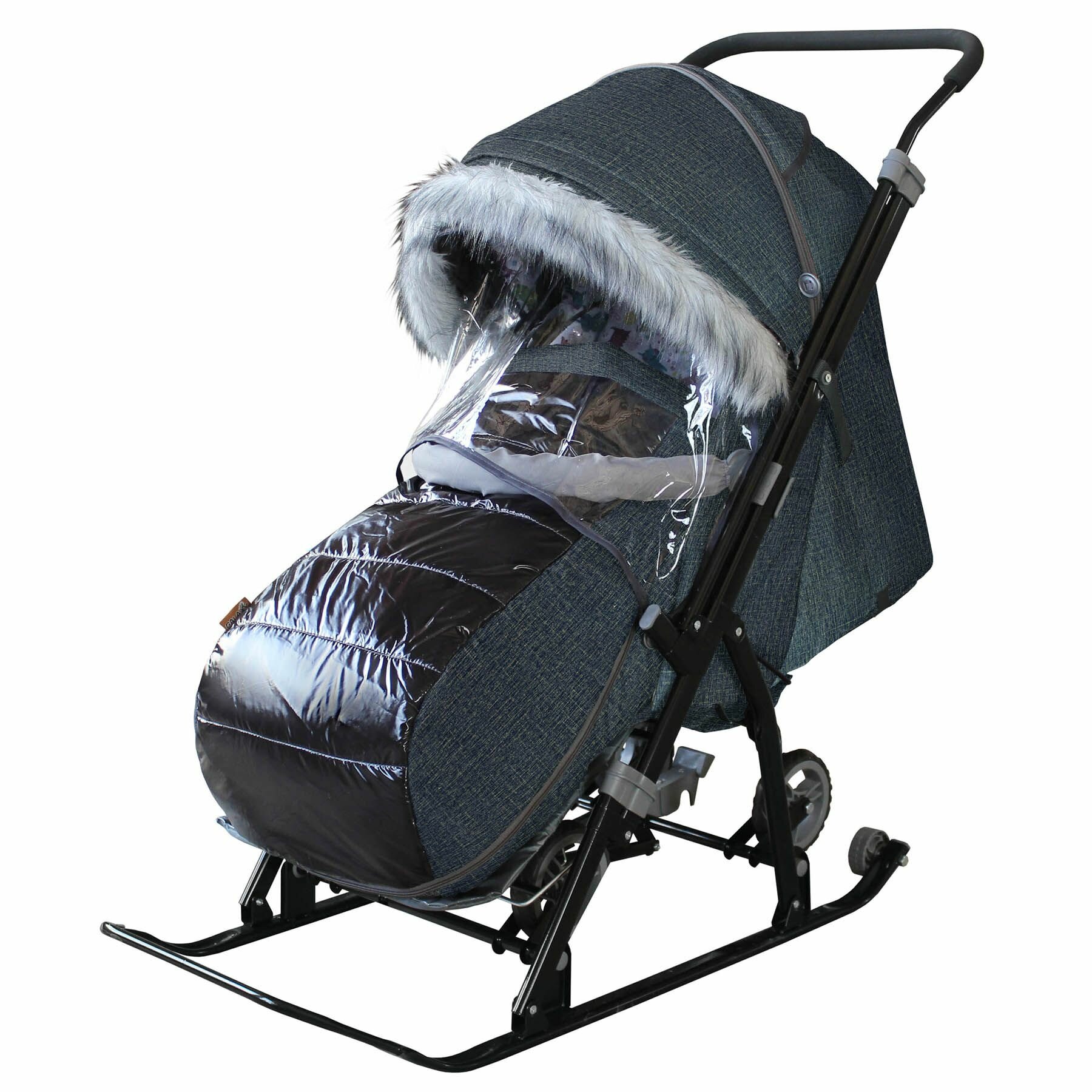 Отзывы на Санки коляска детские зимние Galaxy Nova с колесами и перекидной ручкой, серо-зеленый лен