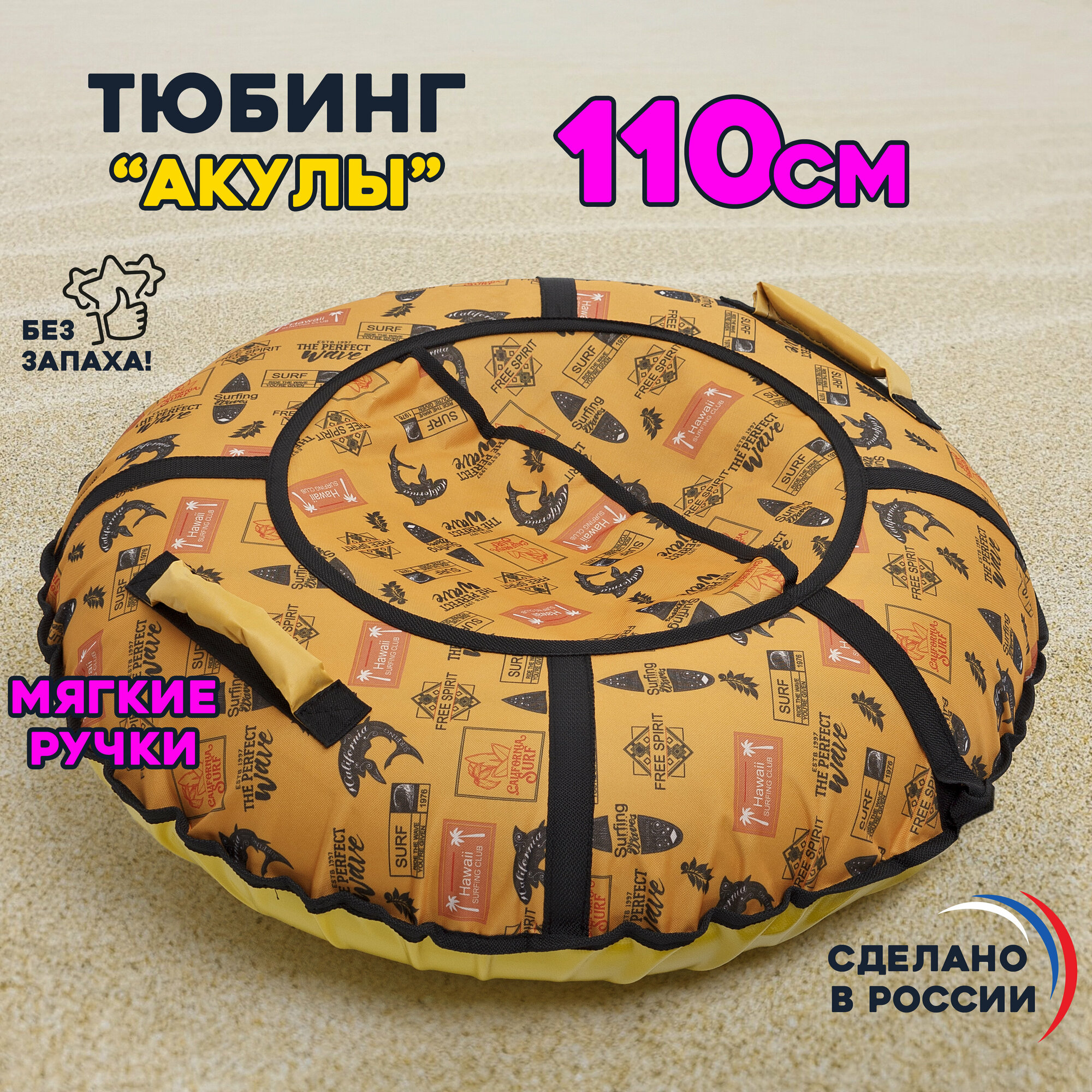 Отзывы на Ватрушка тюбинг плюшка для катания Saimaa "Акулы" 100 см с мягкими ручками