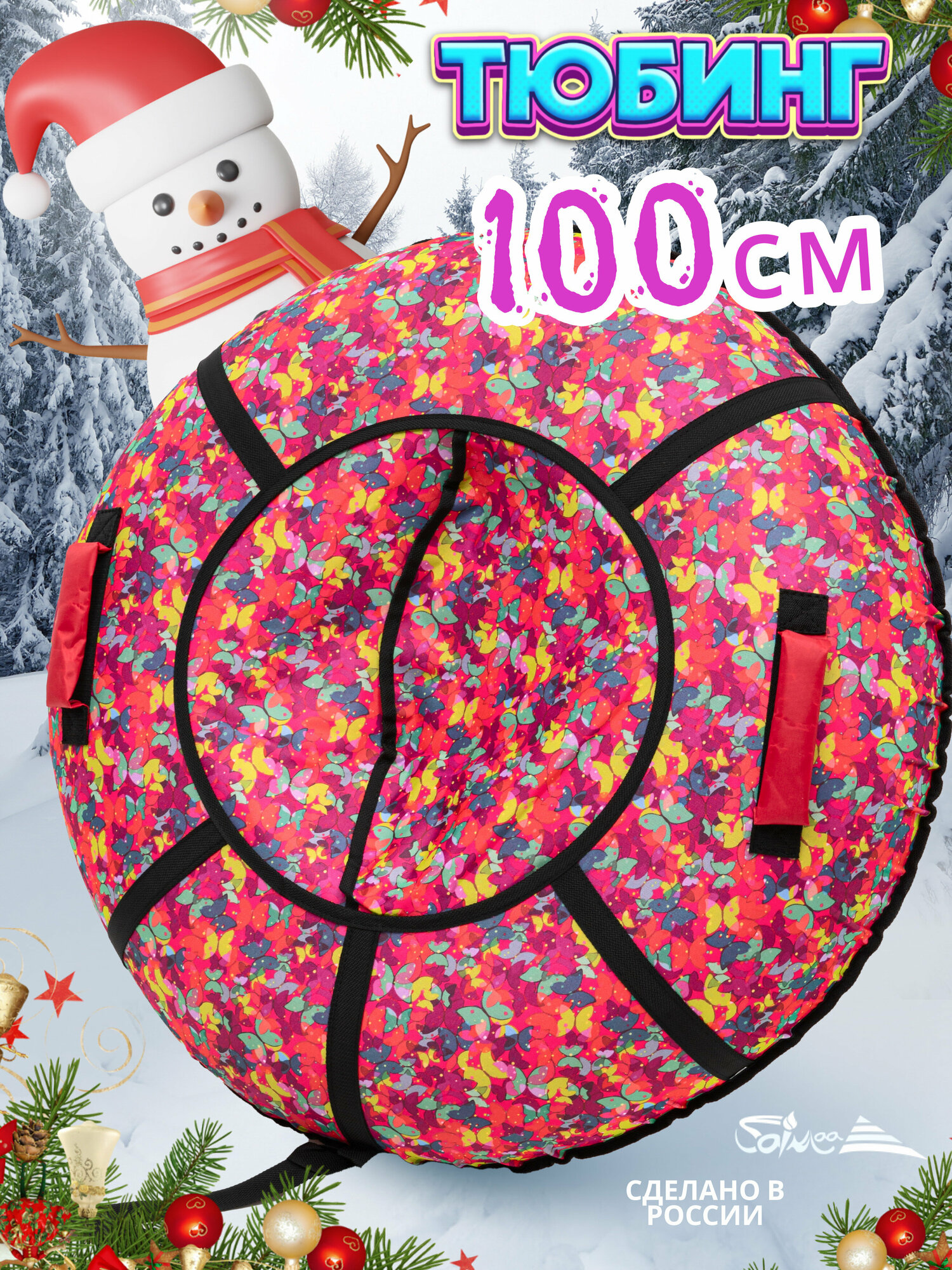 Ватрушка тюбинг плюшка для катания Saimaa "Разноцветные бабочки" 100 см с мягкими ручками информация: