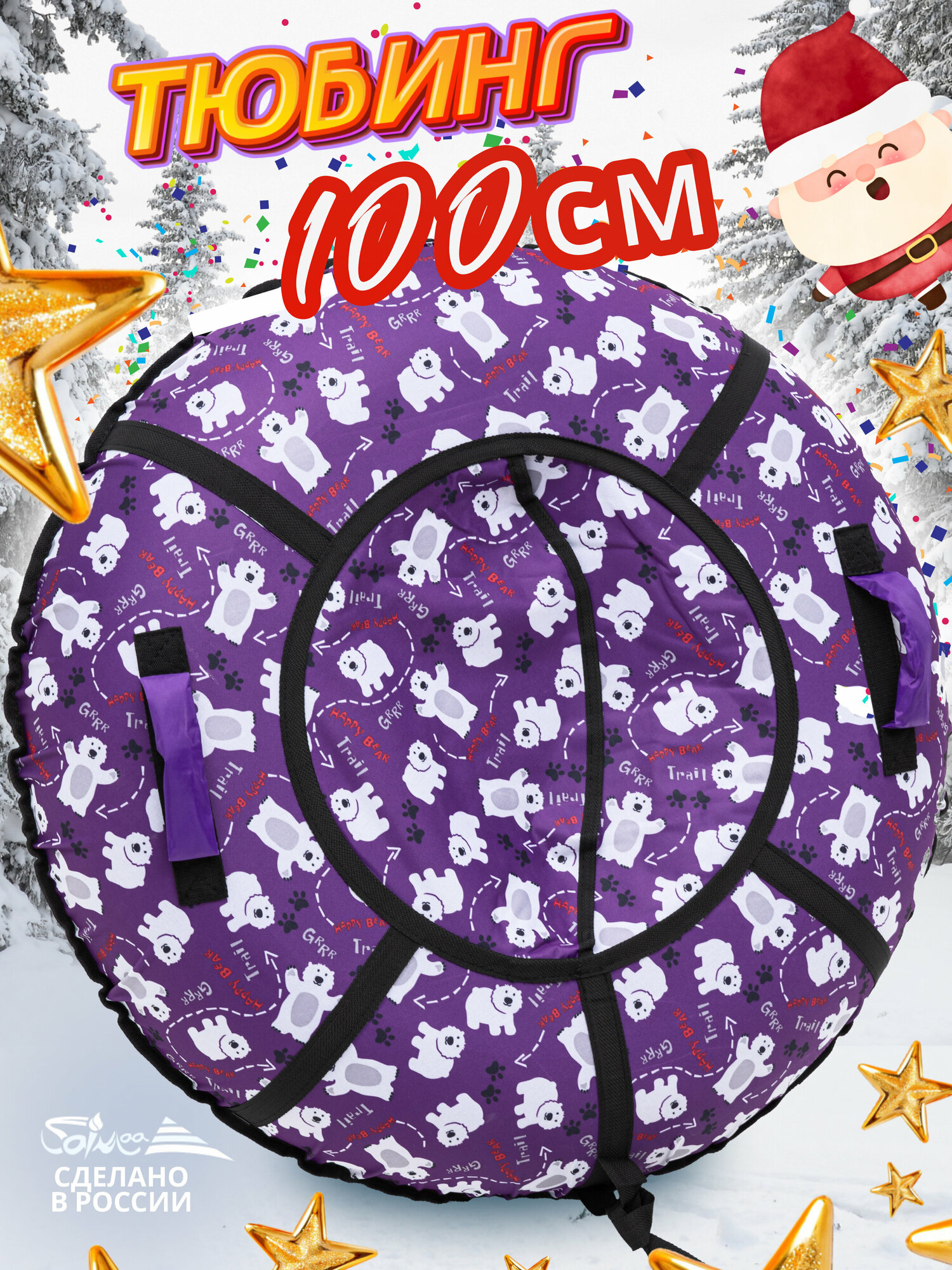 Ватрушка тюбинг плюшка для катания Saimaa "Мишки на сиреневом" 100 см с мягкими ручками информация: