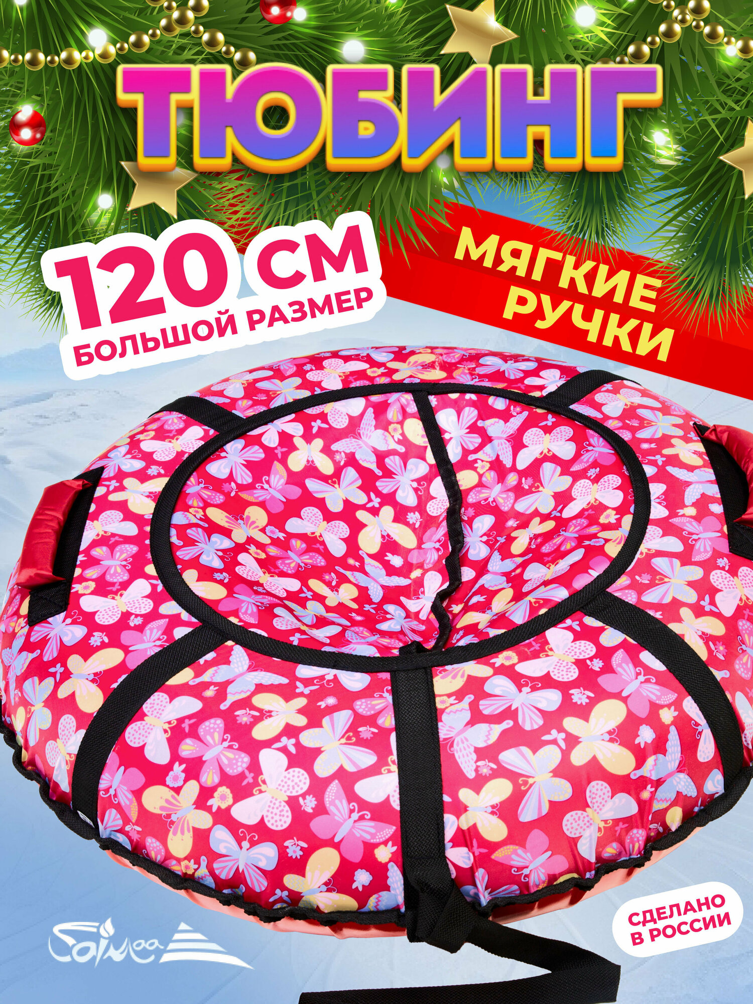 Ватрушка тюбинг плюшка для катания Saimaa "Бабочки" 120 см с мягкими ручками информация: