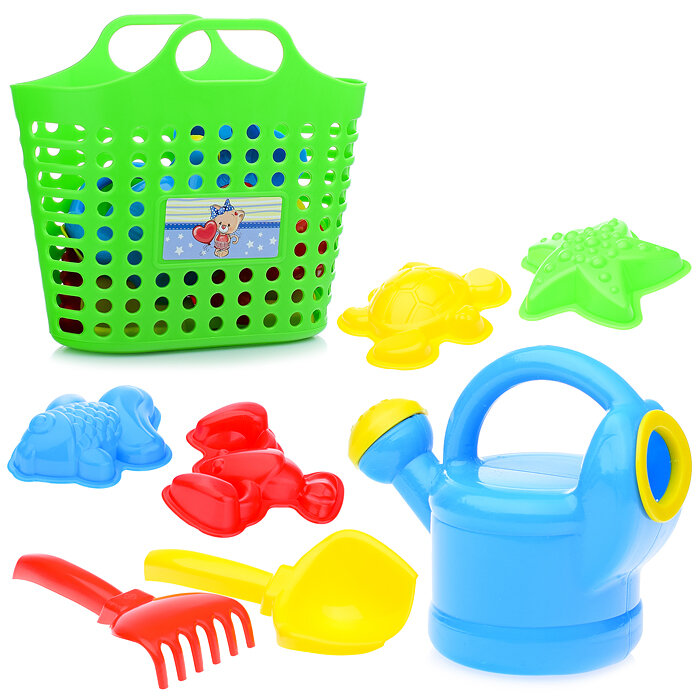 10 цен на Детский песочный набор 8 пр (сумка-корзина, лейка-мини, совок, грабли, формы 4 шт)