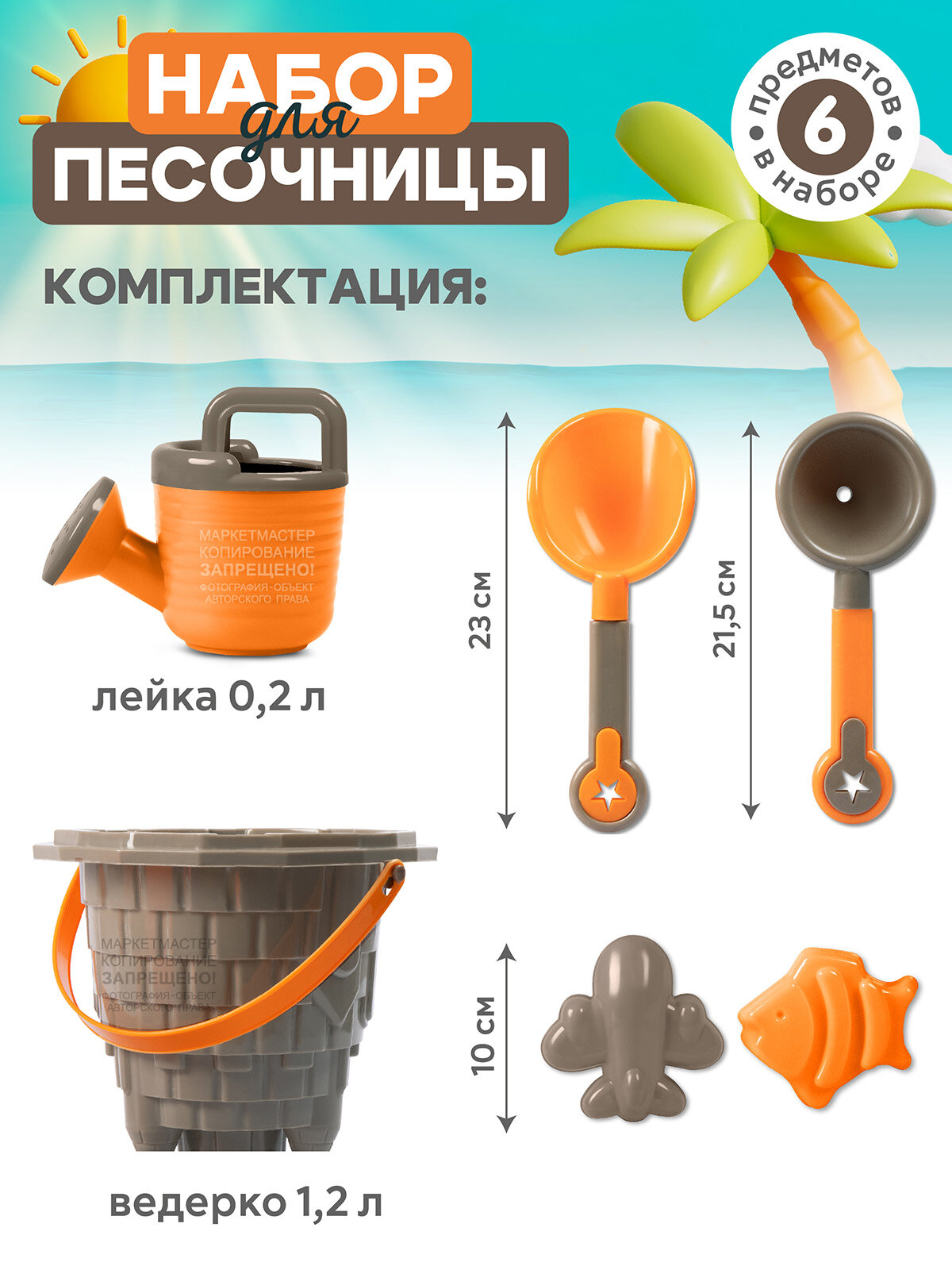 Компания Друзей Песочный набор "Замок" №91 оранжево-коричневый(в комп. ведро 1,2 л, лопатка 23см, воронка 21,5см, 2 формочки 10 см, лейка 0,2 л) 27х19х19 см JB5300635 901 ₽