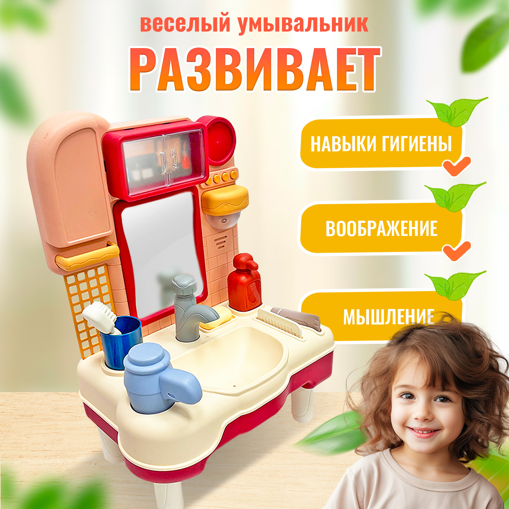 Игровой набор Умывальник SHARKTOYS, мебель для кукол ванная, кукольная игрушечная мебель, свет, звук, песни, течет вода, розовый 1 799 ₽