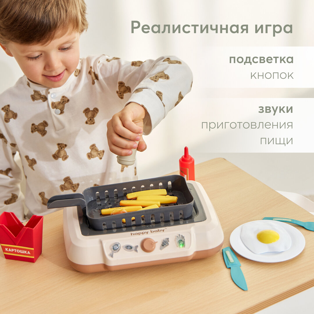331927, Игрушечная плита с продуктами Happy Baby сковородка - фритюр для игровой детской кухни, 20 предметов информация: