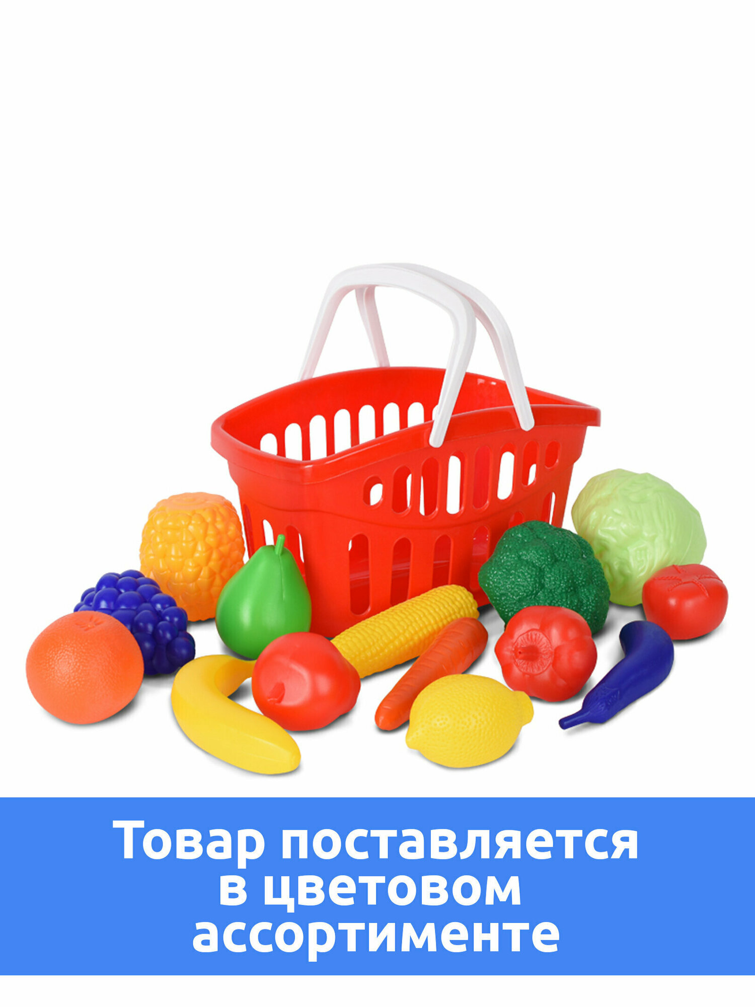 10 цен на Корзинка детская для супермаркета с игровым набором овощей и фруктов игрушечных MEGA TOYS цвет в ассортименте / корзина для игрушек