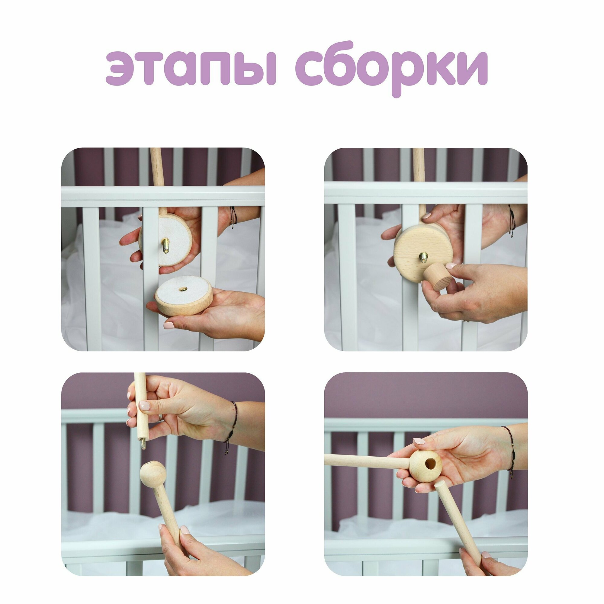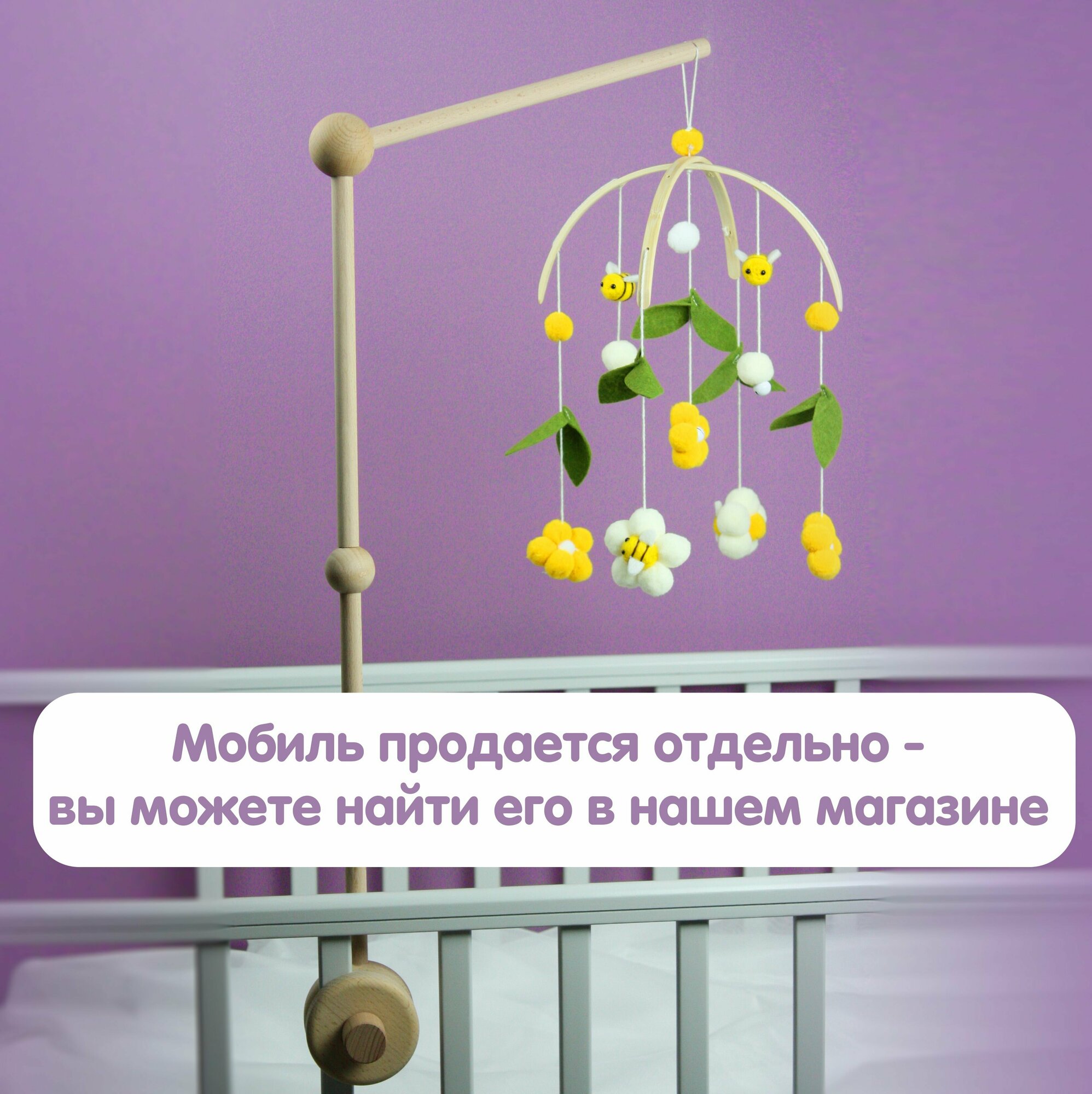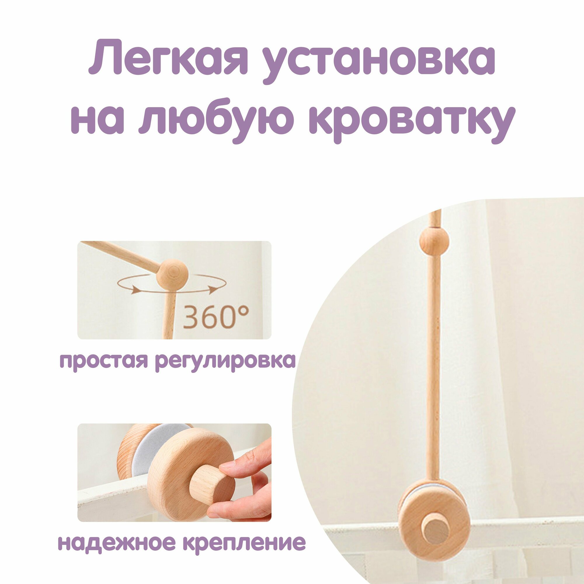 Мобиль на кроватку музыкальный для новорожденных и кронштейн из дерева-3