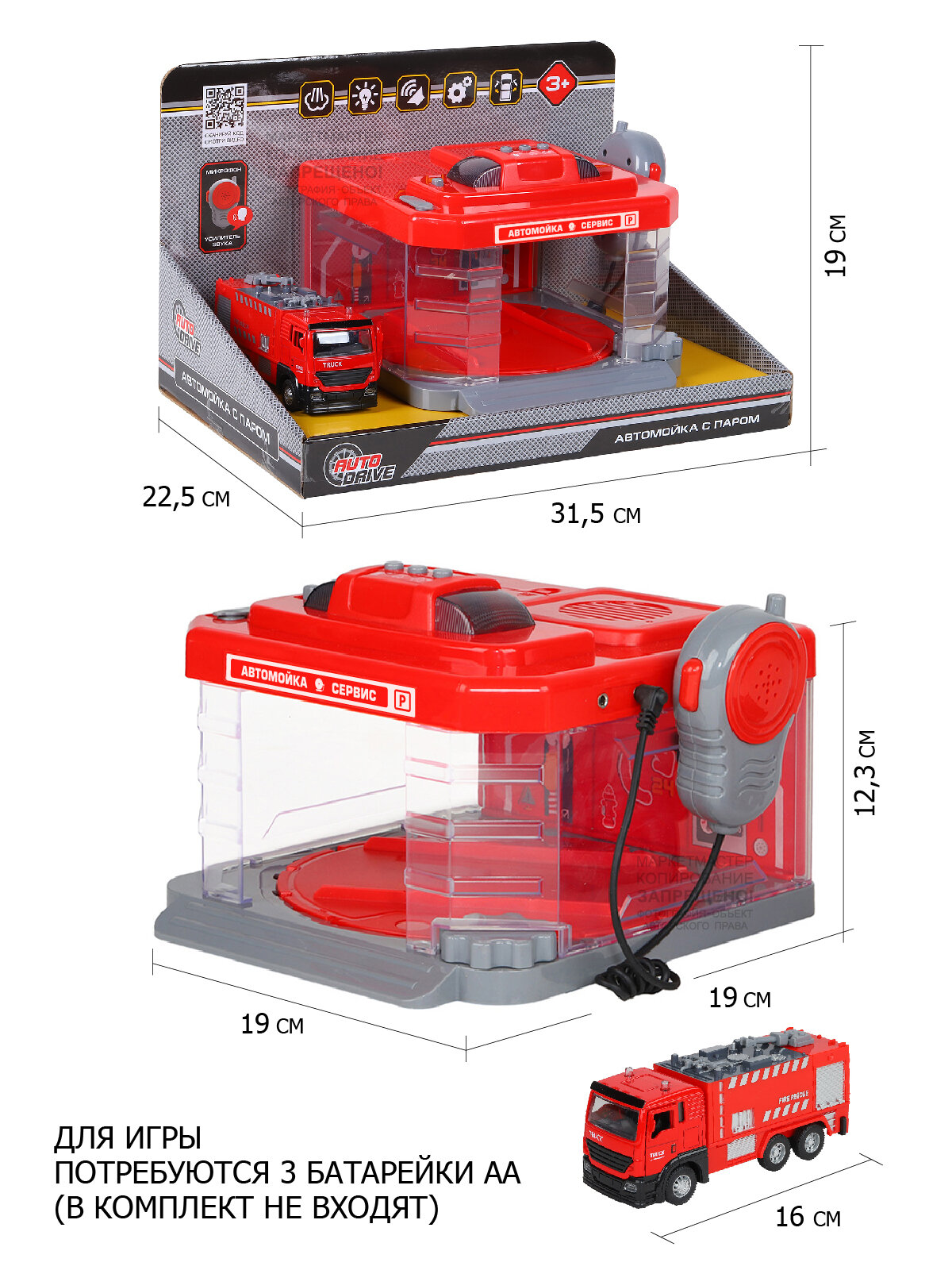 Автомойка с паром ТМ Джамбо Тойз, русская озвучка, машинка, свет, звук, красный, JB0404168 информация: