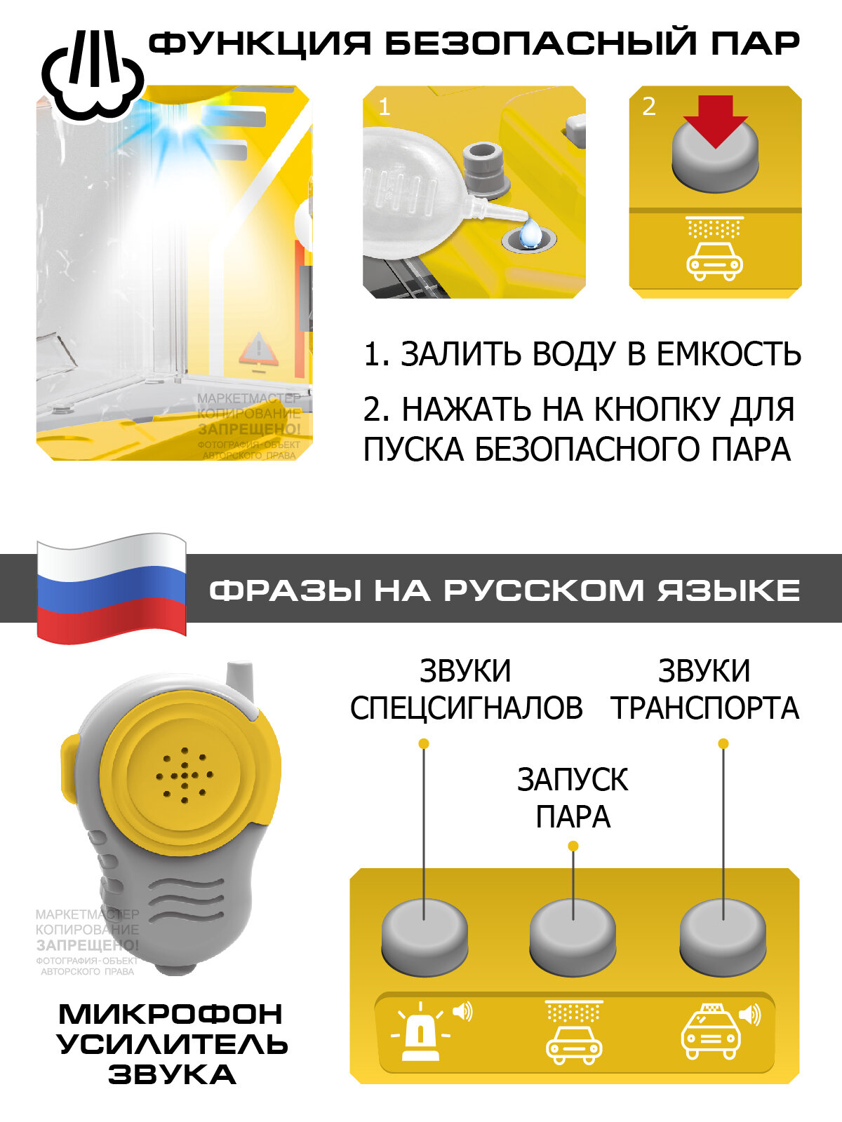 Автомойка с паром ТМ Джамбо Тойз, русская озвучка, машинка, свет, звук, желтый, JB0404171 информация: