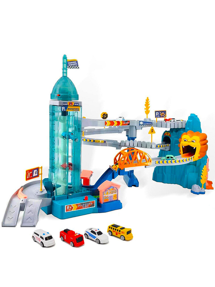 Автотрек парковка гараж Лев + Подарок 67 см звук свет автолифт 4 машины информация: