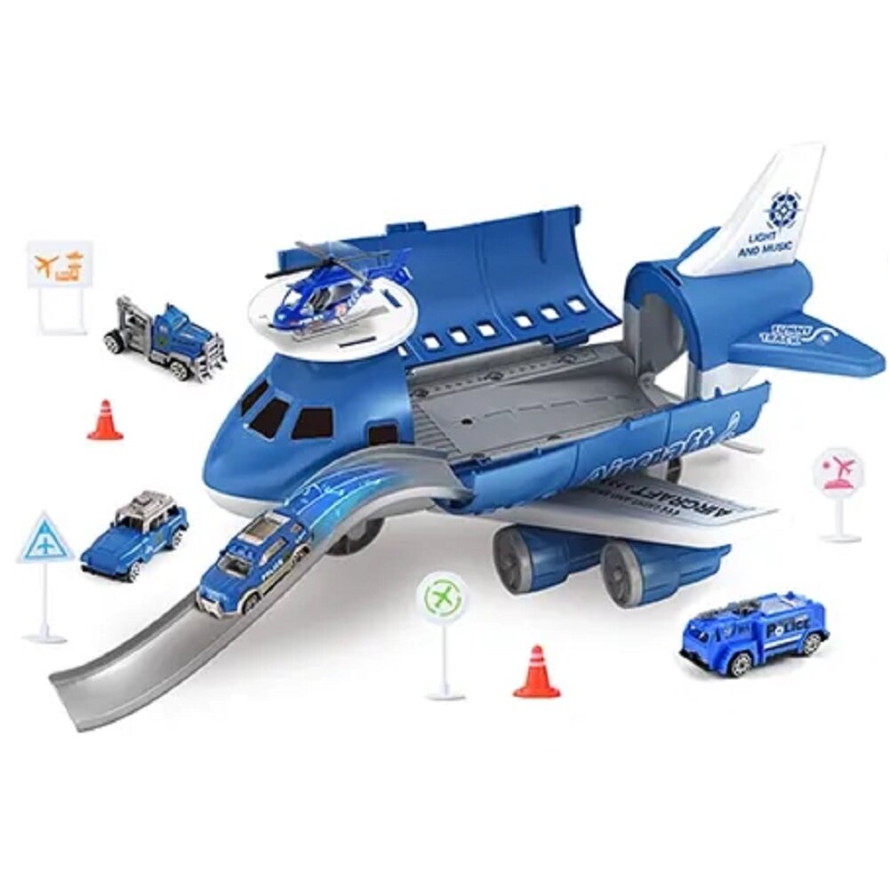 10 цен на Игровой набор Грузовой самолет парковка с 3 металлическими машинками, вертолетом и игровым ковриком