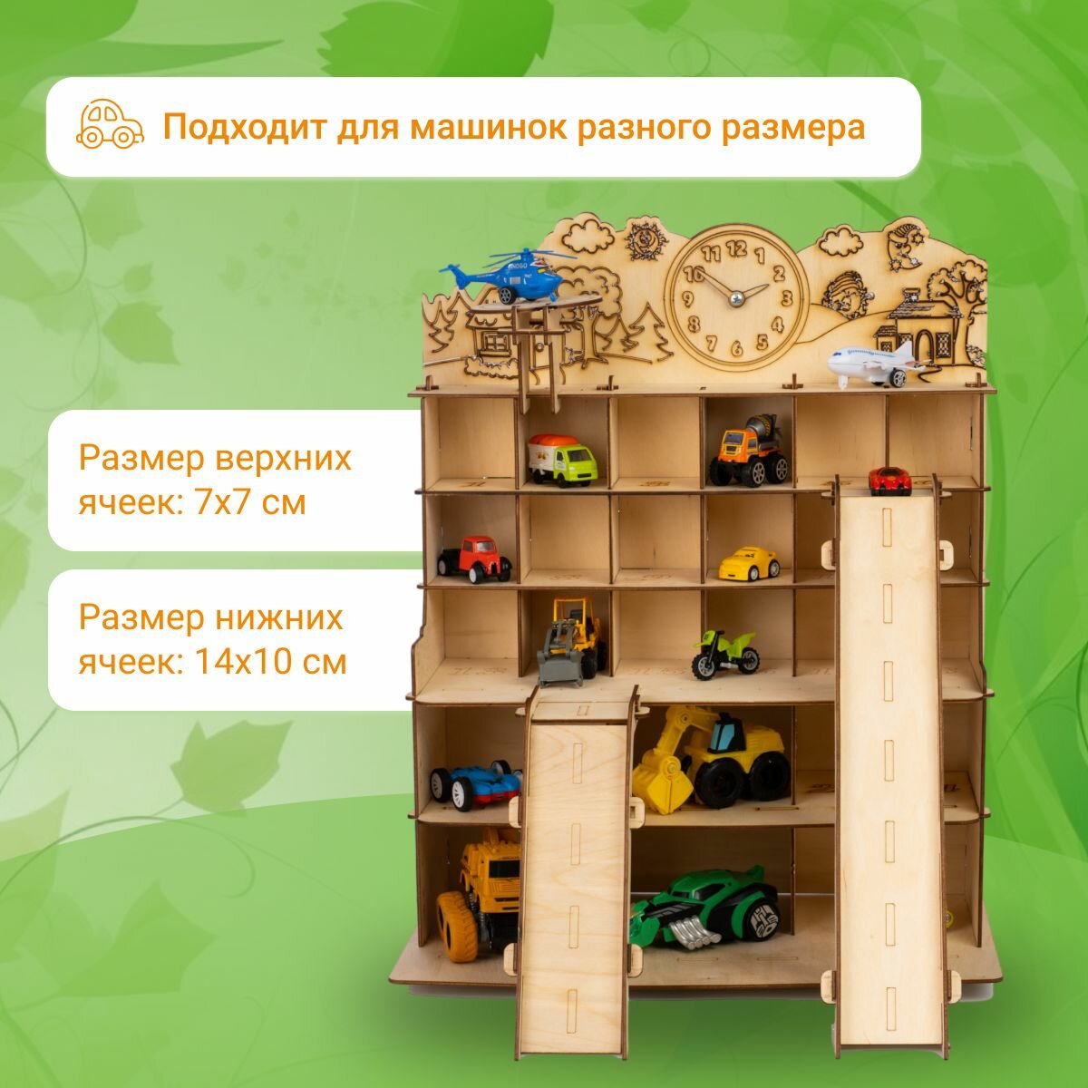 Деревянная парковка Гараж для машинок XL полка для игрушек подарок на день рождения ребенку информация: