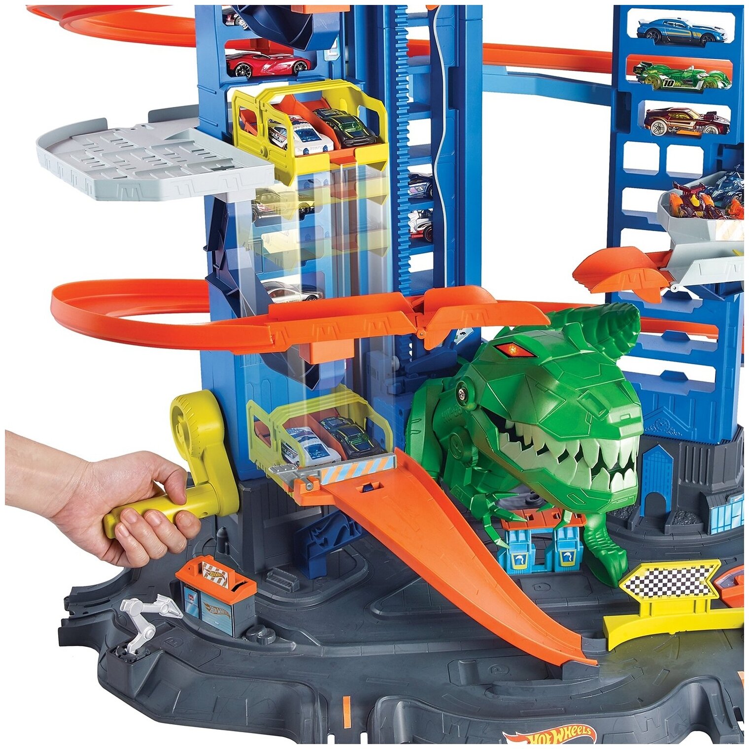 10 цен на Набор игровой Hot Wheels Сити Невообразимый гараж с динозавром GJL14