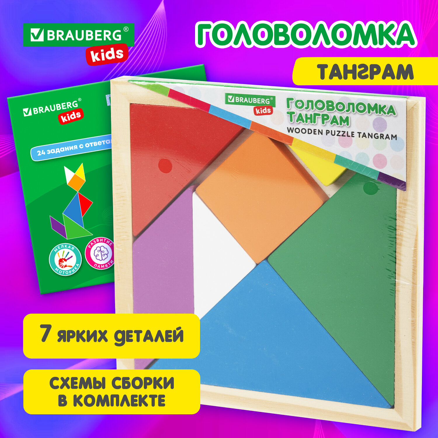 Пазл для малышей деревянный Монтессори от 3 лет, сортер головоломка Танграм магнитный с фигурами, развивающие игрушки для детей, Brauberg Kids, 665261 информация: