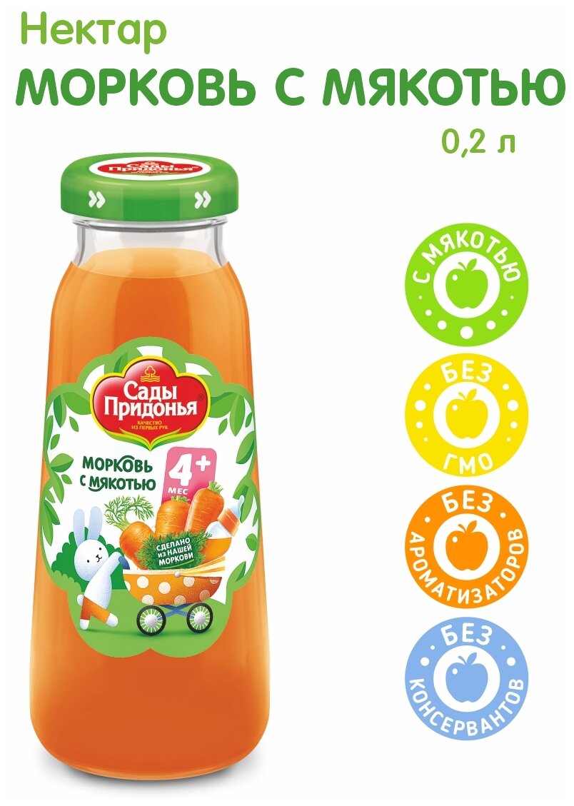 10 цен на Нектар морковный с мякотью Сады Придонья 0,2 л стекло