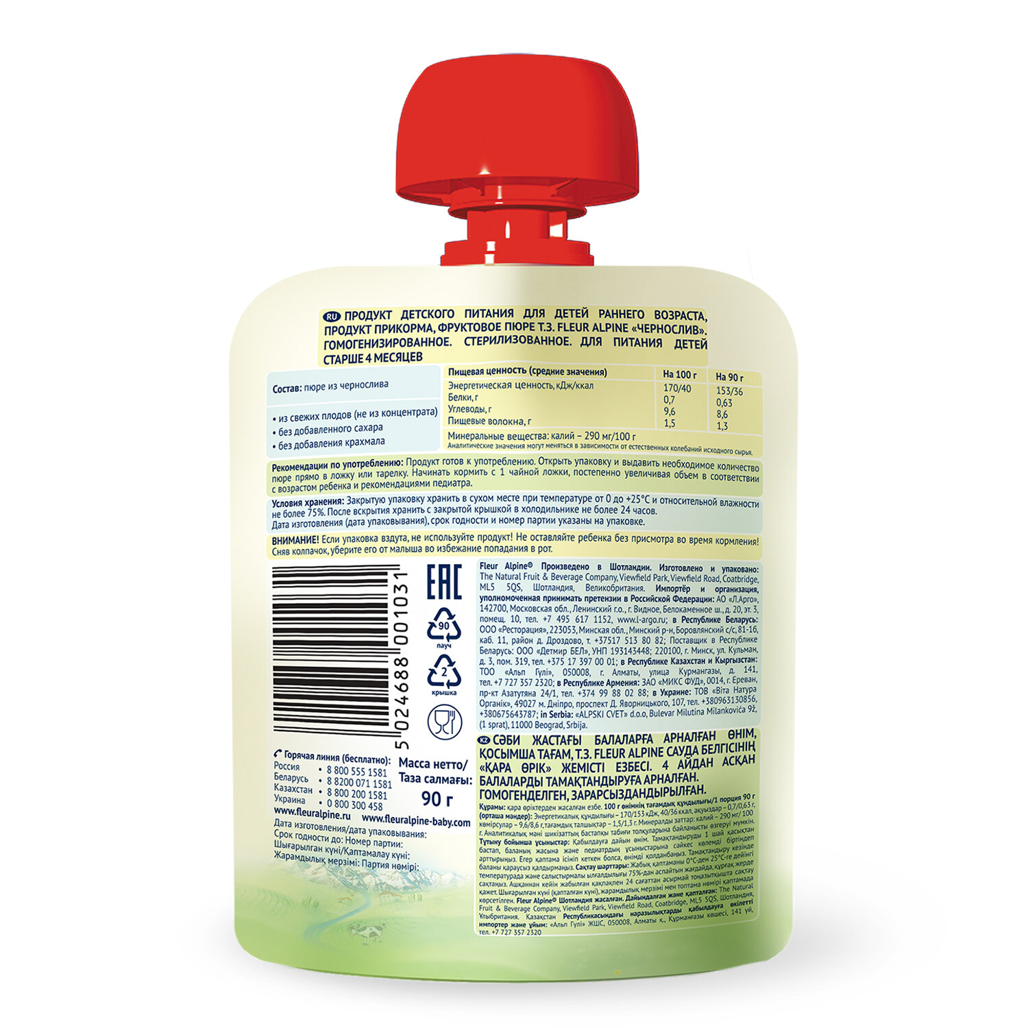 Пюре детское Fleur Alpine чернослив, с 4 месяцев, 90 г (6 штук) информация: