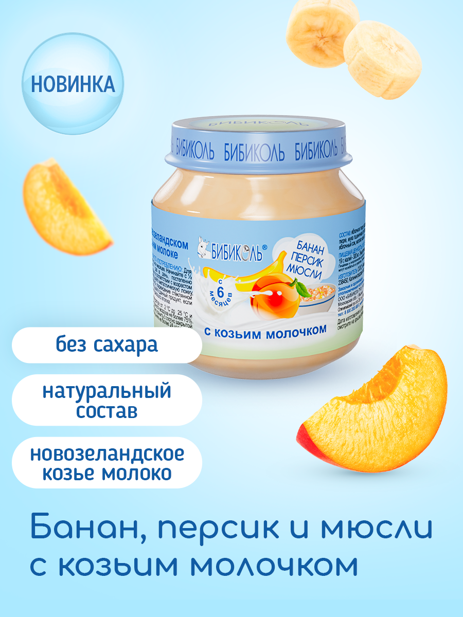 Фруктово-зерновое пюре с козьим молоком «Банан, персик с мюсли и козьим молочком» 6*100гр. информация: