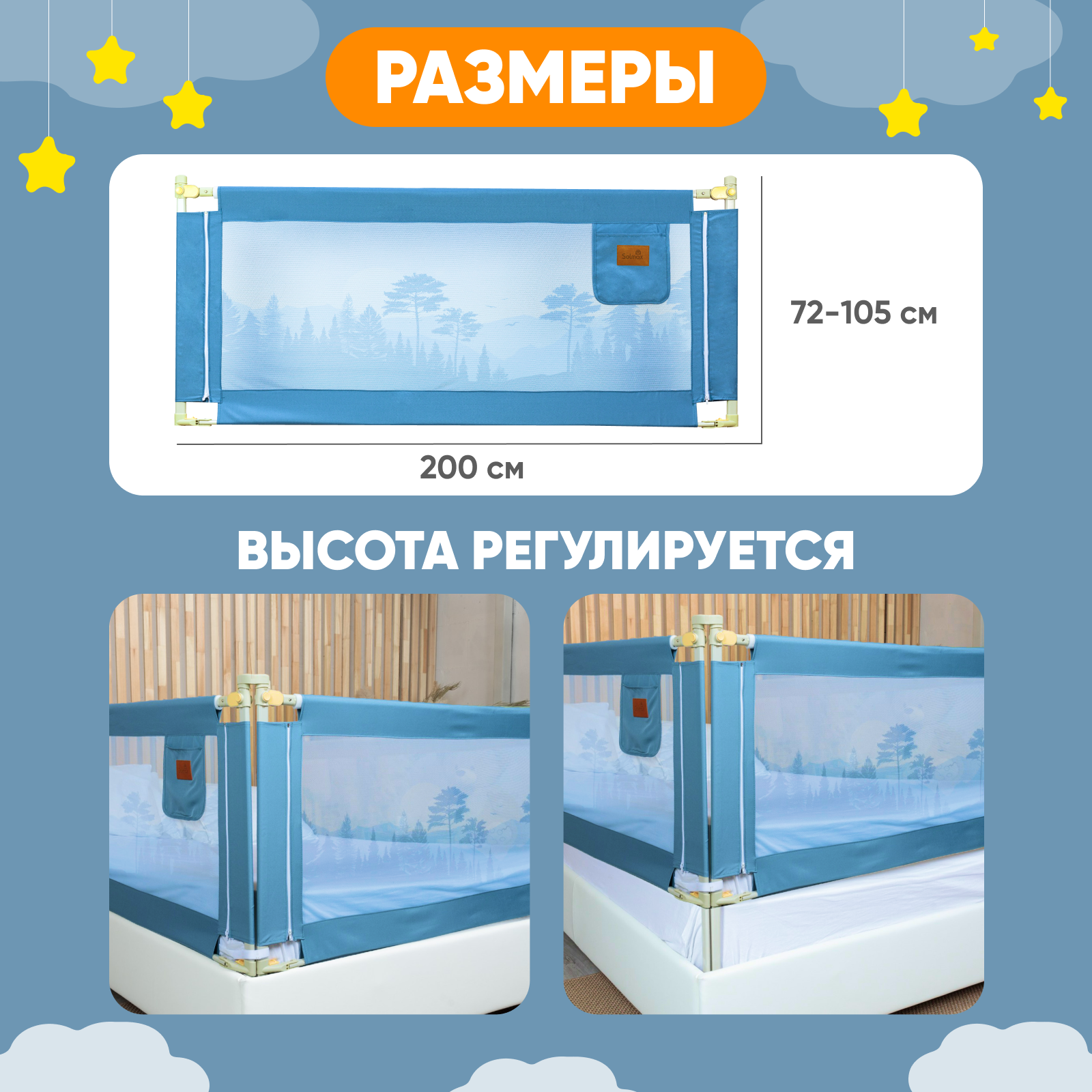 Барьер защитный для кровати от падений, бортик в кроватку для малыша 200 см SOLMAX, синий информация: