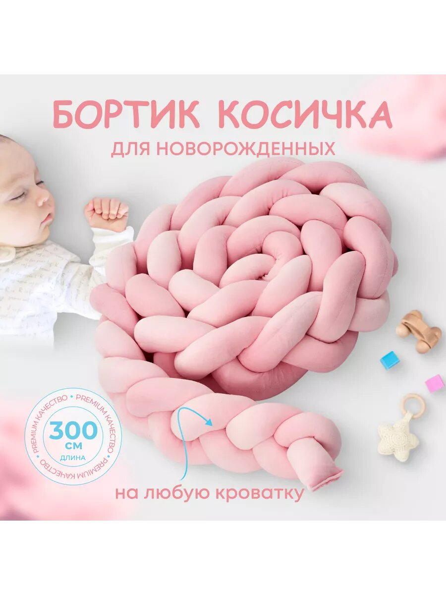 Отзывы на Бортик HomeDreem Косичка 3м для круглой/овальной кроватки для новорожденных, Розовый, для девочек 300х10х6 см