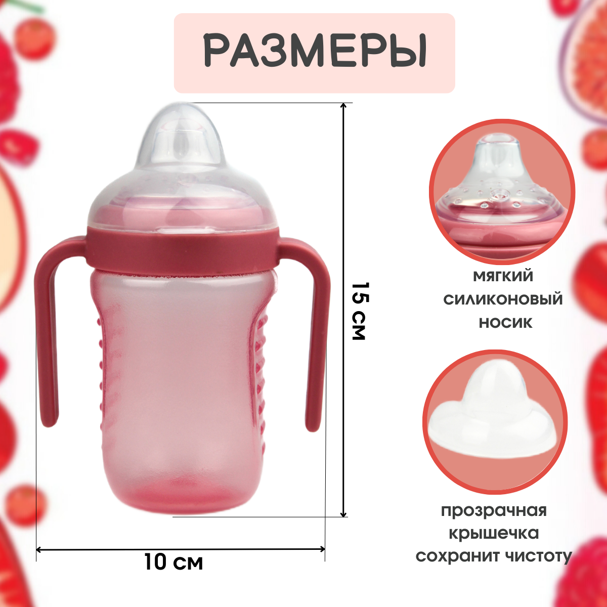 Поильник "Бусинка" детский с силиконовым носиком и ручками 210 мл, 628 информация: