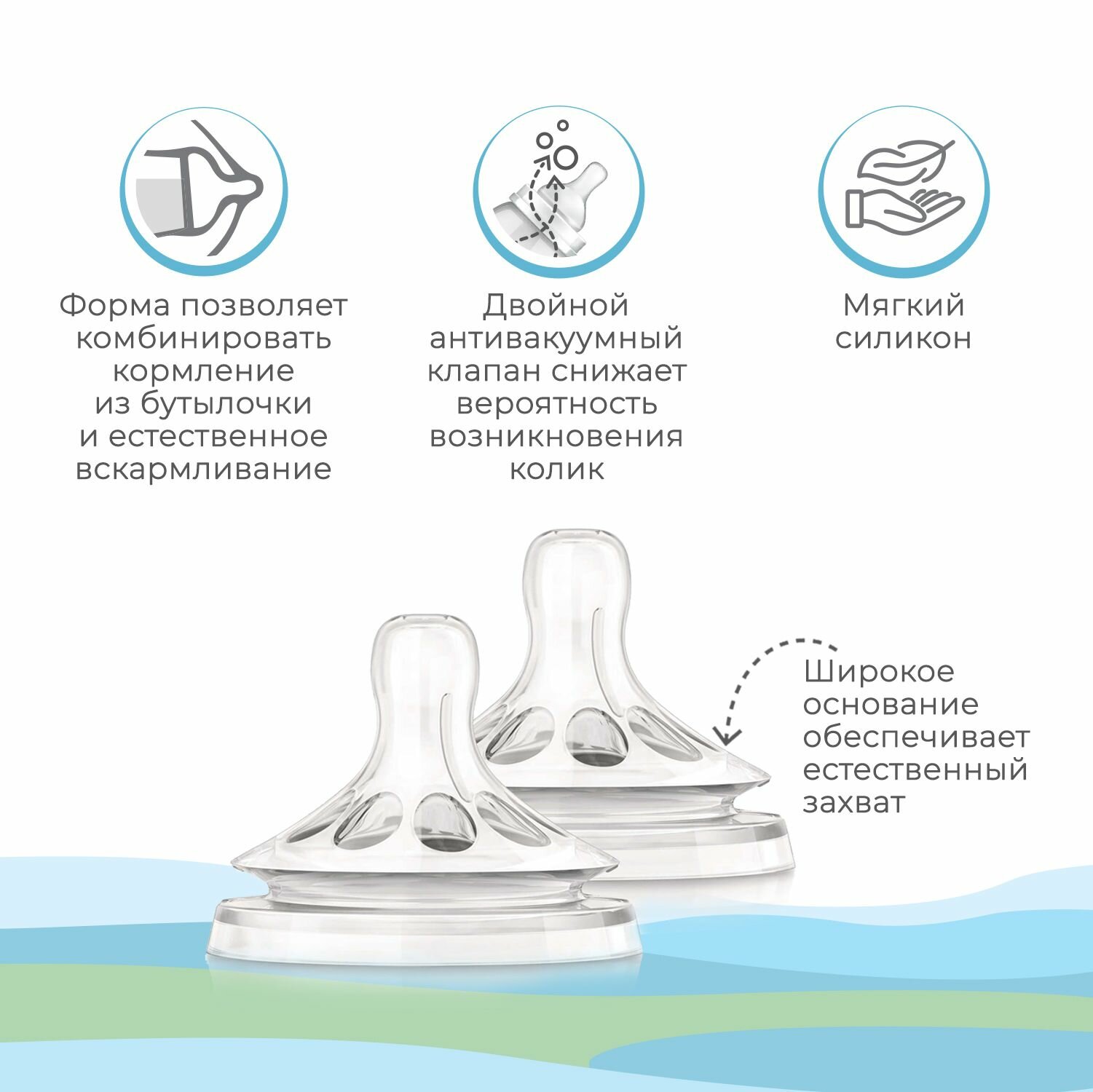 Соска силиконовая, антиколиковая, от 6 мес, широкое горло, для густой пищи