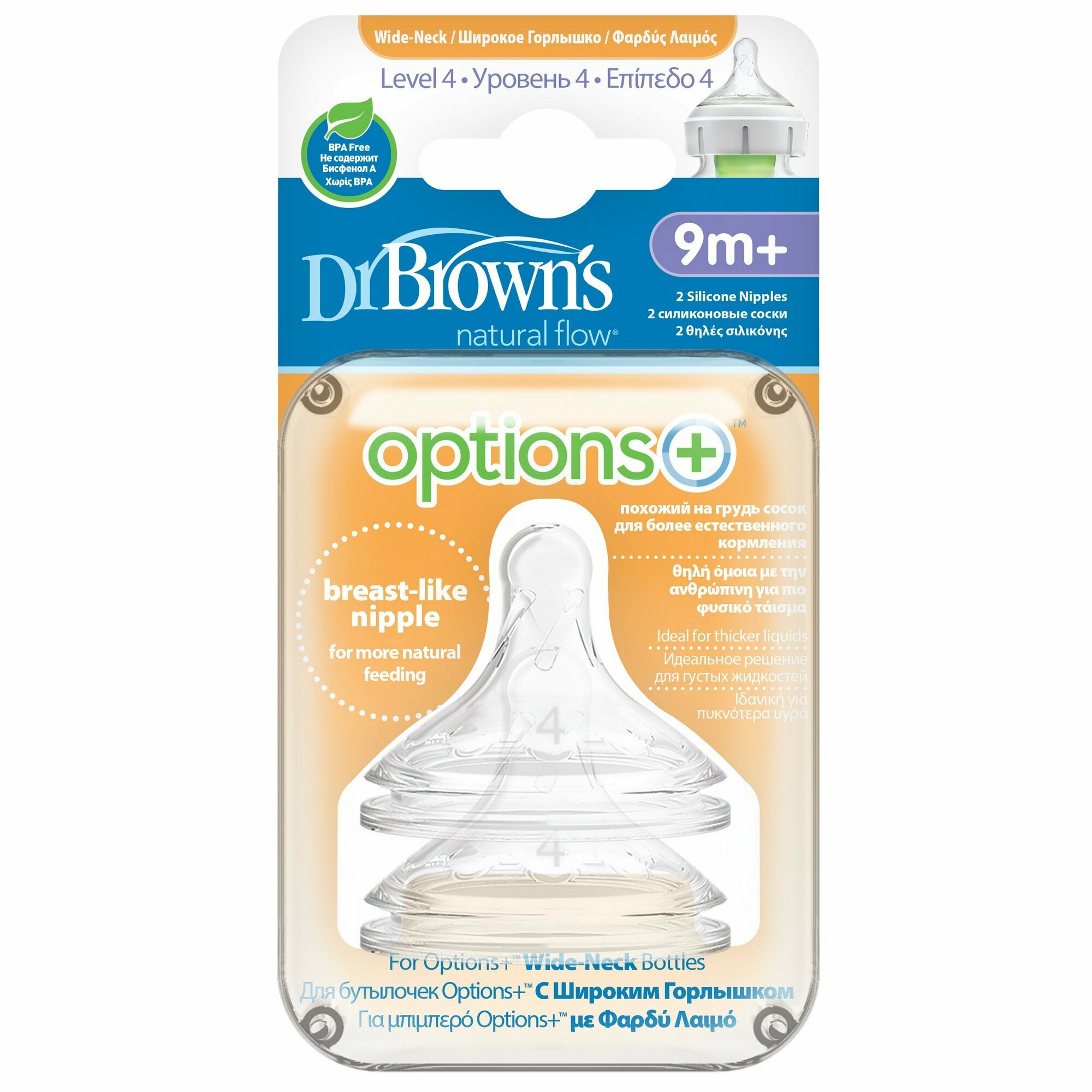 10 цен на Соска силиконовая Dr. Brown's DR.BROWNS с широким горлышком, от 9 мес., 2 шт. (стандарт)