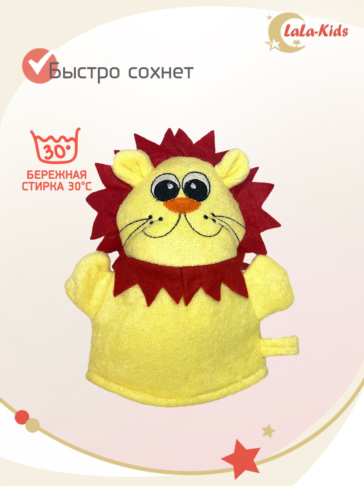10 цен на Мочалка-варежка детская с петелькой "Лев" рукавичка детская 22см