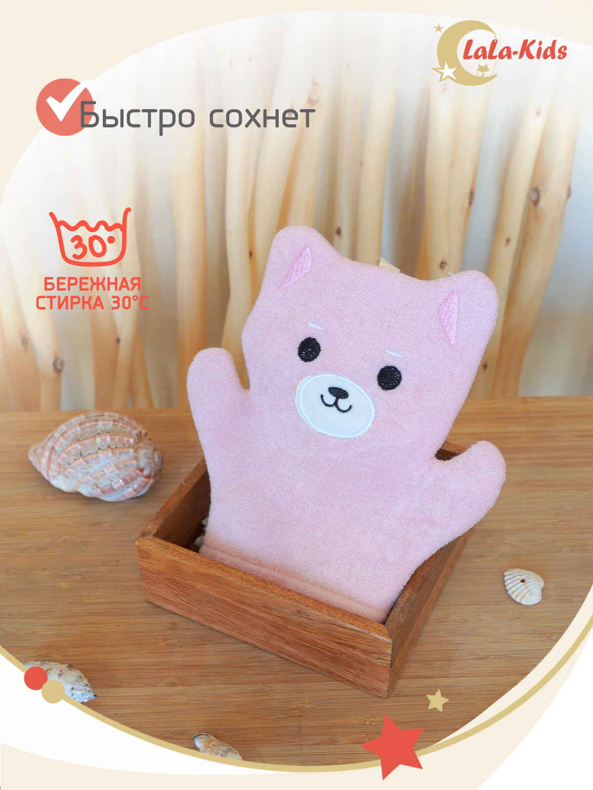 10 цен на Мочалка-варежка детская с петелькой "Медвежонок" рукавичка детская 19см персиковая