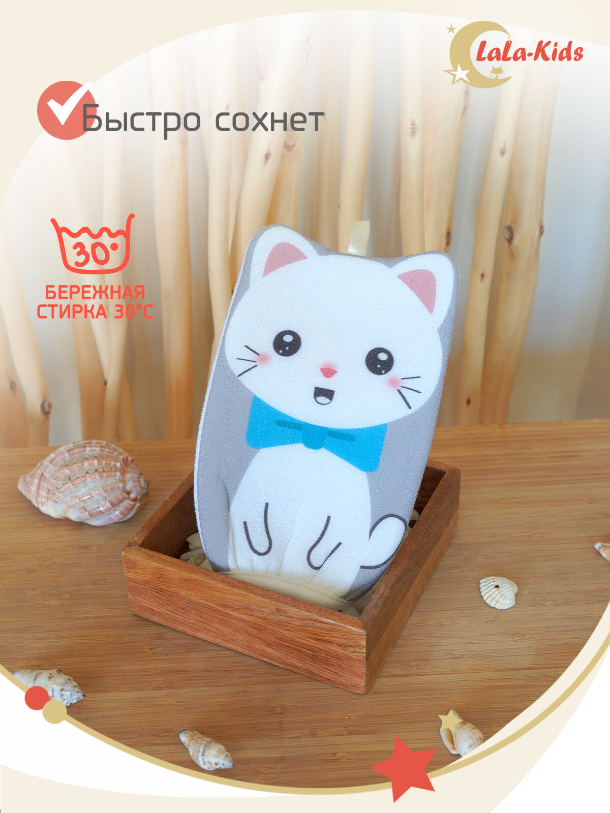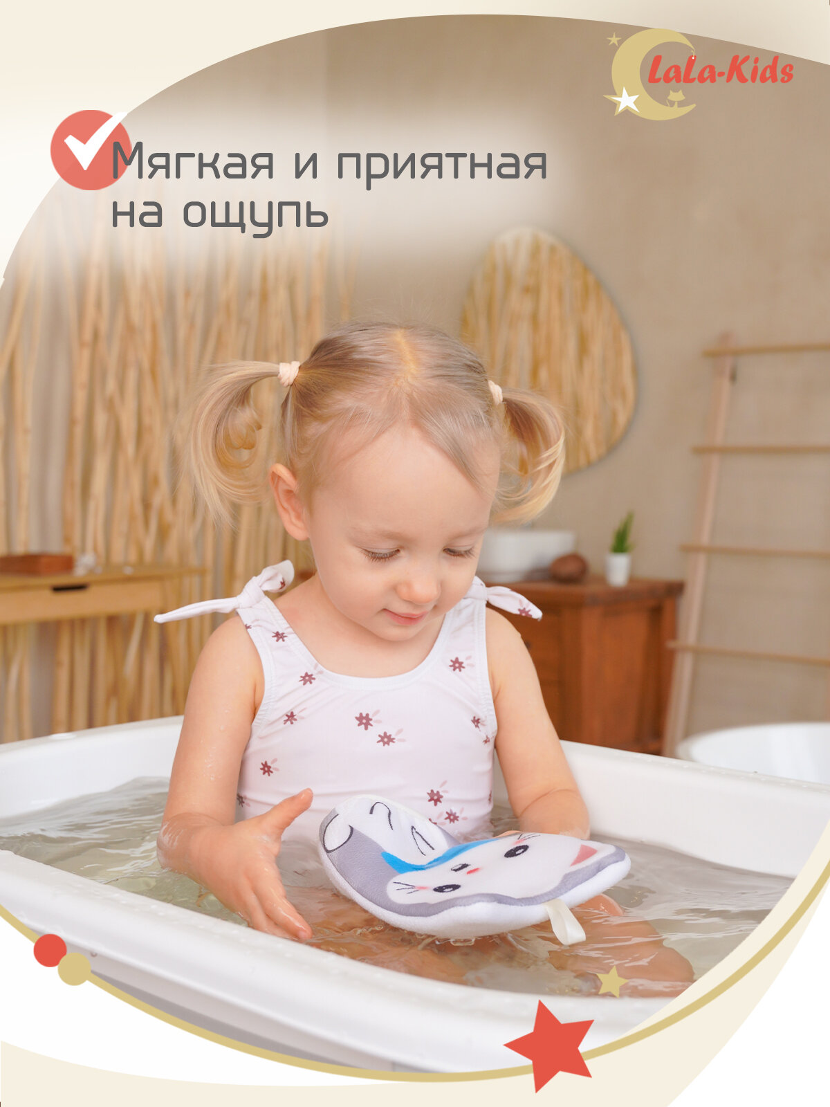 Мочалка-варежка детская с петелькой "Котенок" рукавичка детская 22см 310 ₽