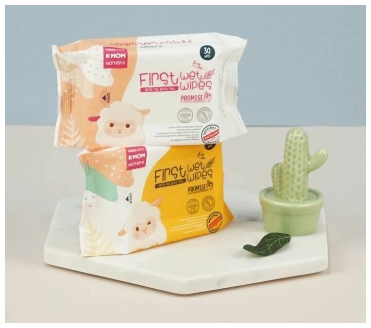 Детские влажные салфетки для рук и рта K-MOM First Wet Wipes Promise, 30 листов 0+ информация: