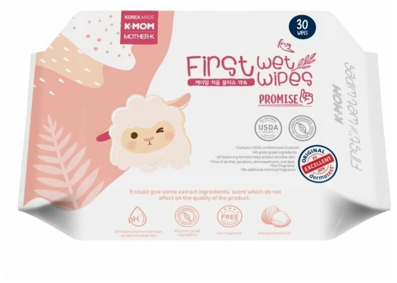 10 цен на Детские влажные салфетки для рук и рта K-MOM First Wet Wipes Promise, 30 листов 0+