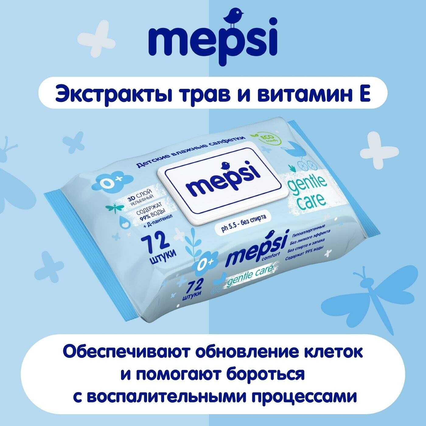 Салфетки влажные Gentle Care с клапаном детские 72шт информация: