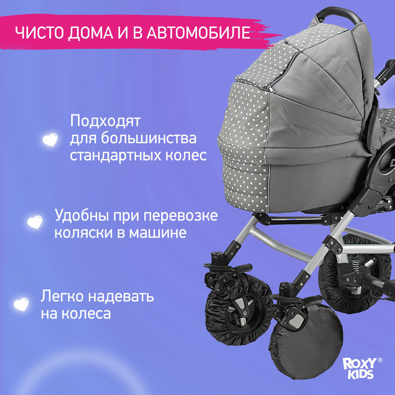 10 цен на Чехлы на колёса для коляски с поворотными колёсами на резинке ROXY-KIDS, 4 шт. цвет черный